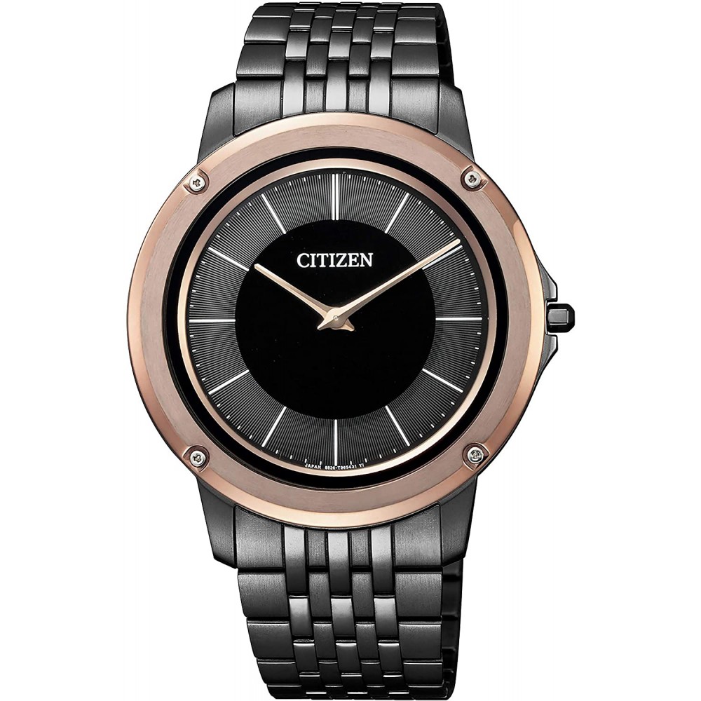 Citizen Eco-Drive One AR5054-51E - men's watch manufactured by Citizen. It has Japanese solar quartz movement and 8826 calibre. Cermet, stainless steel, hard coating case of round shape. Case dimensions are 39 mm. in diameter and 2.98 mm. in thickness. The dial of this Citizen watch is black, gray. Display type: analog. This timepiece has super clear coating, sapphire glass. Stainless steel, hard coating band, band color: gray. 30 m. water resistance. The watch is from Eco-Drive One collection.