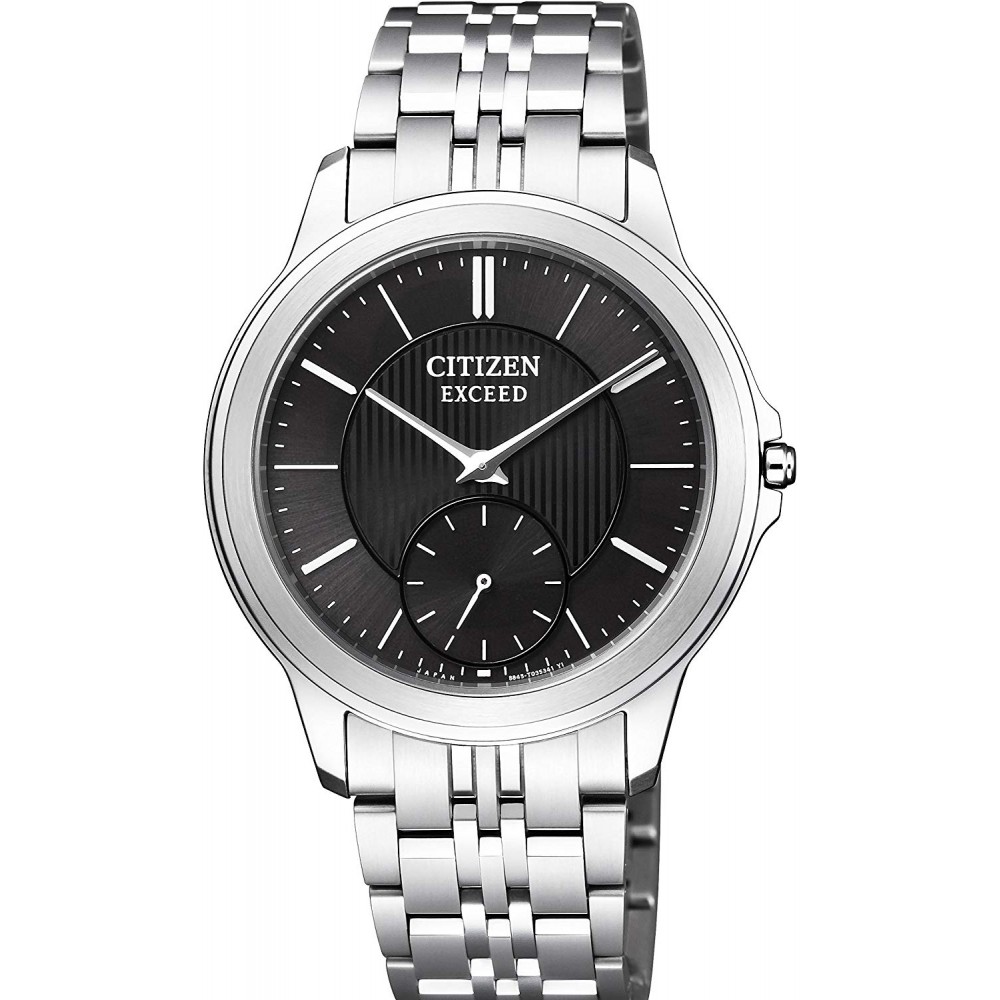 CITIZEN EXCEED AQ5000-56E - men's watch manufactured by Citizen. It is equipped with Japanese solar quartz movement and 8845 calibre. Titanium, hard coating case of round shape. Case dimensions are 36.5 mm. in diameter and 4.5 mm. in thickness. The dial of this Citizen watch is black. Display type: analog. This timepiece has sapphire, super clear coating glass. Titanium, hard coating band, band color: silver. 30 m. water resistance. The watch is from Exceed collection.