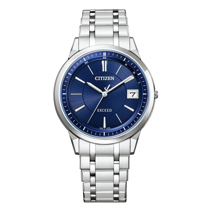 Citizen Exceed AS7150-51L - men's watch made by Citizen. It has Japanese solar quartz movement and H113 calibre. Titanium, hard coating case of round shape. Case dimensions are 38 mm. in diameter and 6.9 mm. in thickness. The dial of this Citizen watch is blue. Display type: analog. This timepiece has sapphire, super clear coating glass. Titanium, hard coating band, band color: silver. 30 m. water resistance. The watch is from Exceed collection. The following features are equipped: radio controlled, perpetual calendar, date, antimagnetic.