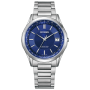 Citizen Exceed CB1110-61L - men's watch produced by Citizen. It has Japanese solar quartz movement and H149 calibre. Super titanium, duratect treatment case of round shape. Case dimensions are 38 mm. in diameter and 8.5 mm. in thickness. The dial of this Citizen watch is blue. Display type: analog. This timepiece has sapphire, clarity coating glass. Super titanium band, band color: silver. 50 m. water resistance. The watch is from Exceed collection. The following features are equipped: radio controlled, antimagnetic, power reserve indicator, world time, date, perpetual calendar.