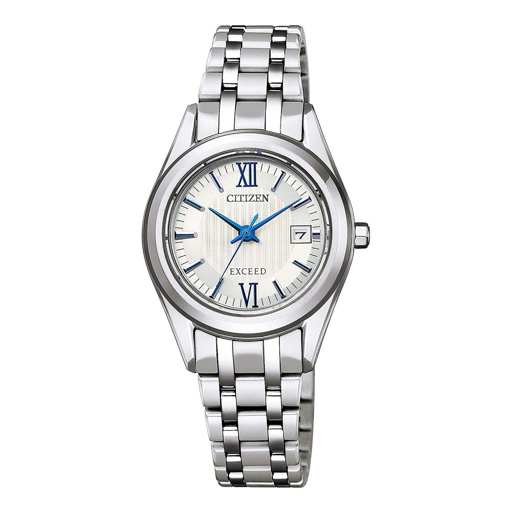 Citizen Exceed FE1000-51A - ladies watch produced by Citizen. It is equipped with Japanese solar quartz movement and J710 calibre. Titanium, hard coating case of round shape. Case dimensions are 27.8 mm. in diameter and 8.3 mm. in thickness. The dial of this Citizen watch is silver. Display type: analog. This timepiece has sapphire, antireflection coating glass. Titanium, hard coating band, band color: silver. 50 m. water resistance. The watch is from Exceed collection. The following features are equipped: date.