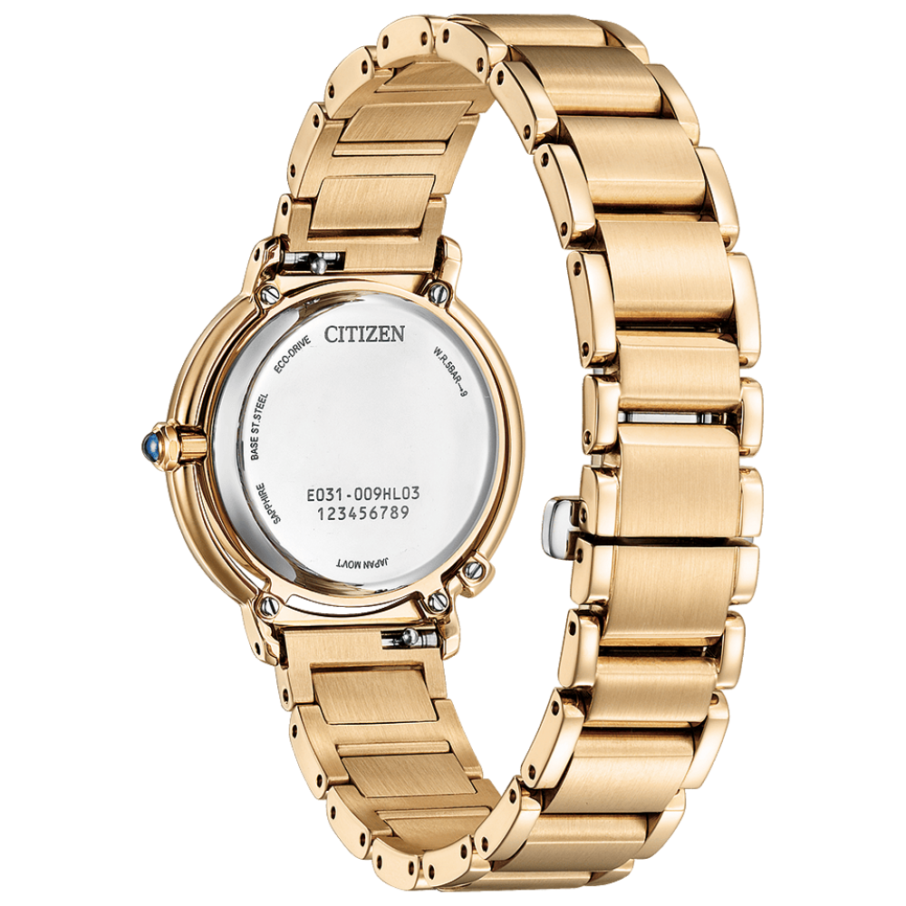 - Features: Movement - Solar Quartz; Case Material - Stainless Steel, Gold Plated; Case Size - 31.2; Water Resistance - 50; Glass - Sapphire