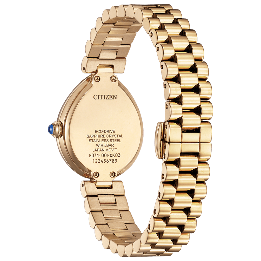 - Features: Movement - Solar Quartz; Case Material - Stainless Steel, Gold Plated; Case Size - 26.2; Water Resistance - 50; Glass - Sapphire, Antireflection Coating