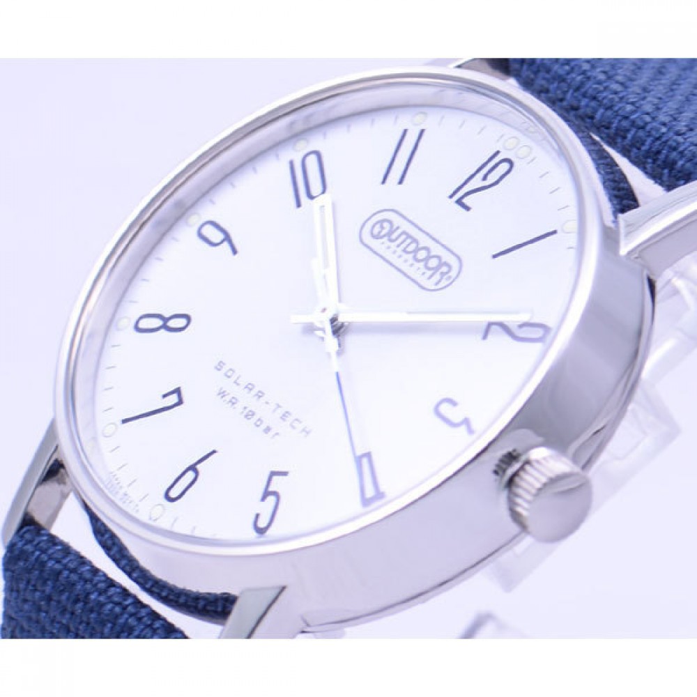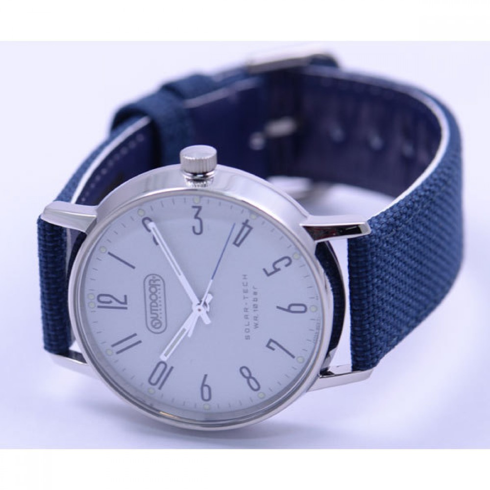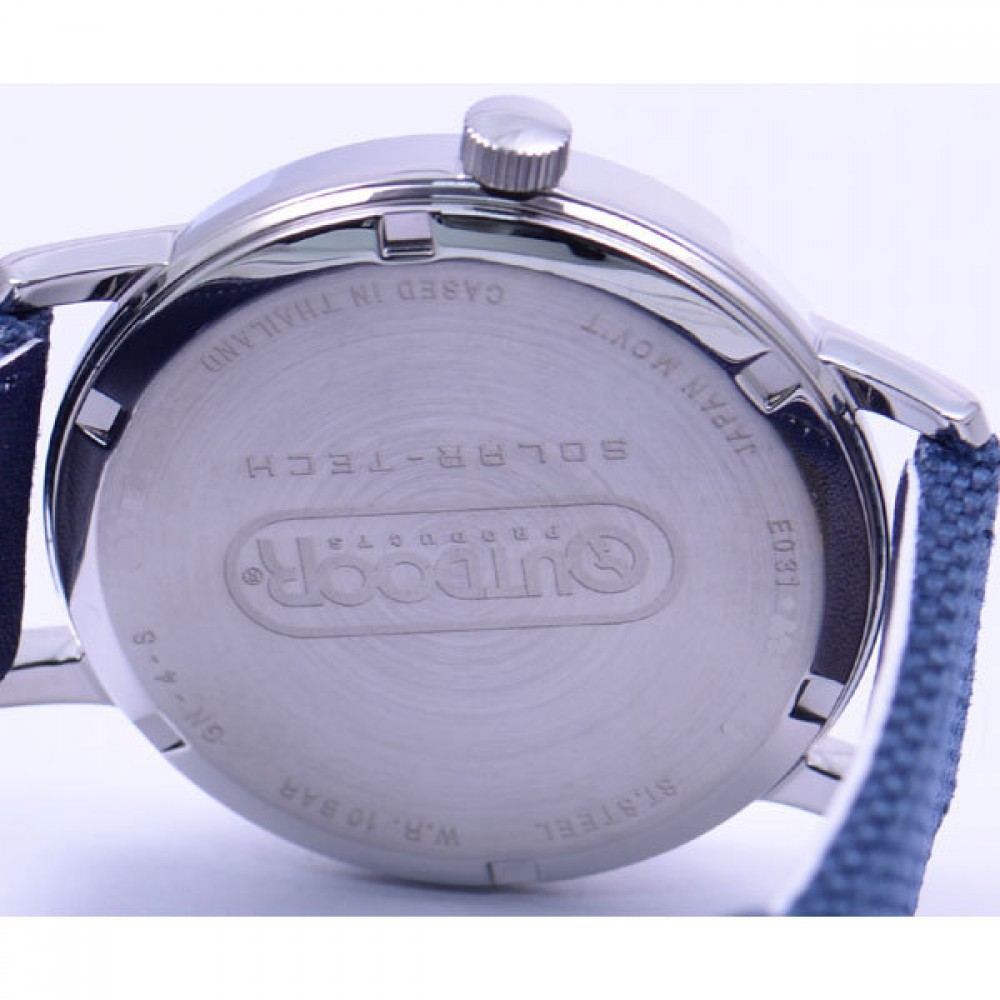 CITIZEN OUTDOOR KP2-311-14 - men's watch made by Citizen. It is equipped with Japanese solar quartz movement and E031 calibre. Stainless steel case of round shape. Case dimensions are 39.1 mm. in diameter and 9.1 mm. in thickness. The dial of this Citizen watch is white. Display type: analog. This timepiece has mineral glass. Fabric band, band color: blue. 100 m. water resistance. The watch is from Citizen Outdoor collection.