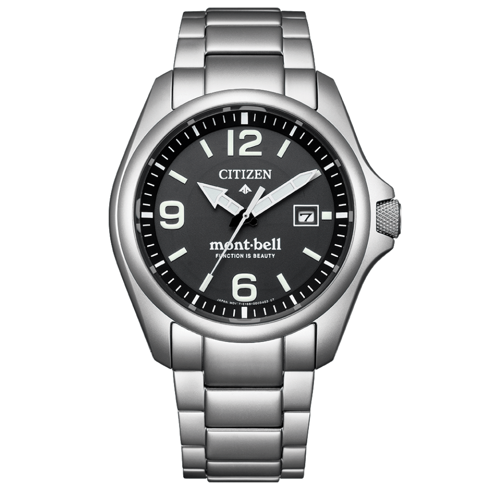 Citizen Promaster Land Mont-bell Collaboration Limited Edition BN0247-52E - men's watch manufactured by Citizen. It is equipped with Japanese solar quartz movement and E168 calibre. Super titanium, duratect mrk case of round shape. Case dimensions are 40.8 mm. in diameter and 12.3 mm. in thickness. The dial of this Citizen watch is black. Display type: analog. This timepiece has sapphire, antireflection coating glass. Super titanium band, band color: silver. 200 m. water resistance. The watch is from Promaster collection. The following features are equipped: antimagnetic, screw-down crown, glowing hands, glowing markers, date, limited edition.