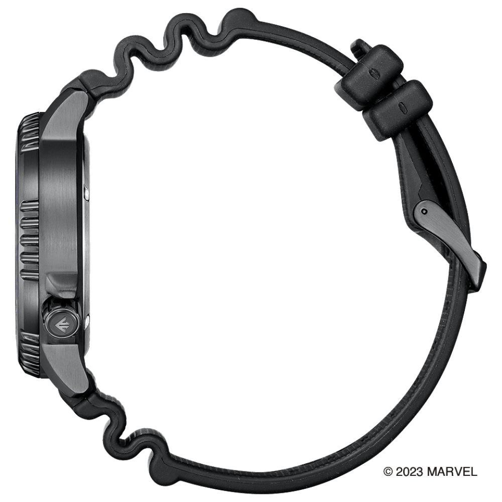 Citizen Promaster Marine Miles Morales Limited Edition BN0255-03E - men's watch manufactured by Citizen. It has Japanese solar quartz movement and E168 calibre. Stainless steel, duratect treatment case of round shape. Case dimensions are 44 mm. in diameter and 11.5 mm. in thickness. The dial of this Citizen watch is black. Display type: analog. This timepiece has mineral glass. Urethane band, band color: black. 200 m. water resistance. The watch is from Promaster collection. The following features are equipped: antimagnetic, screw-down crown, glowing hands, glowing markers, limited edition, date.