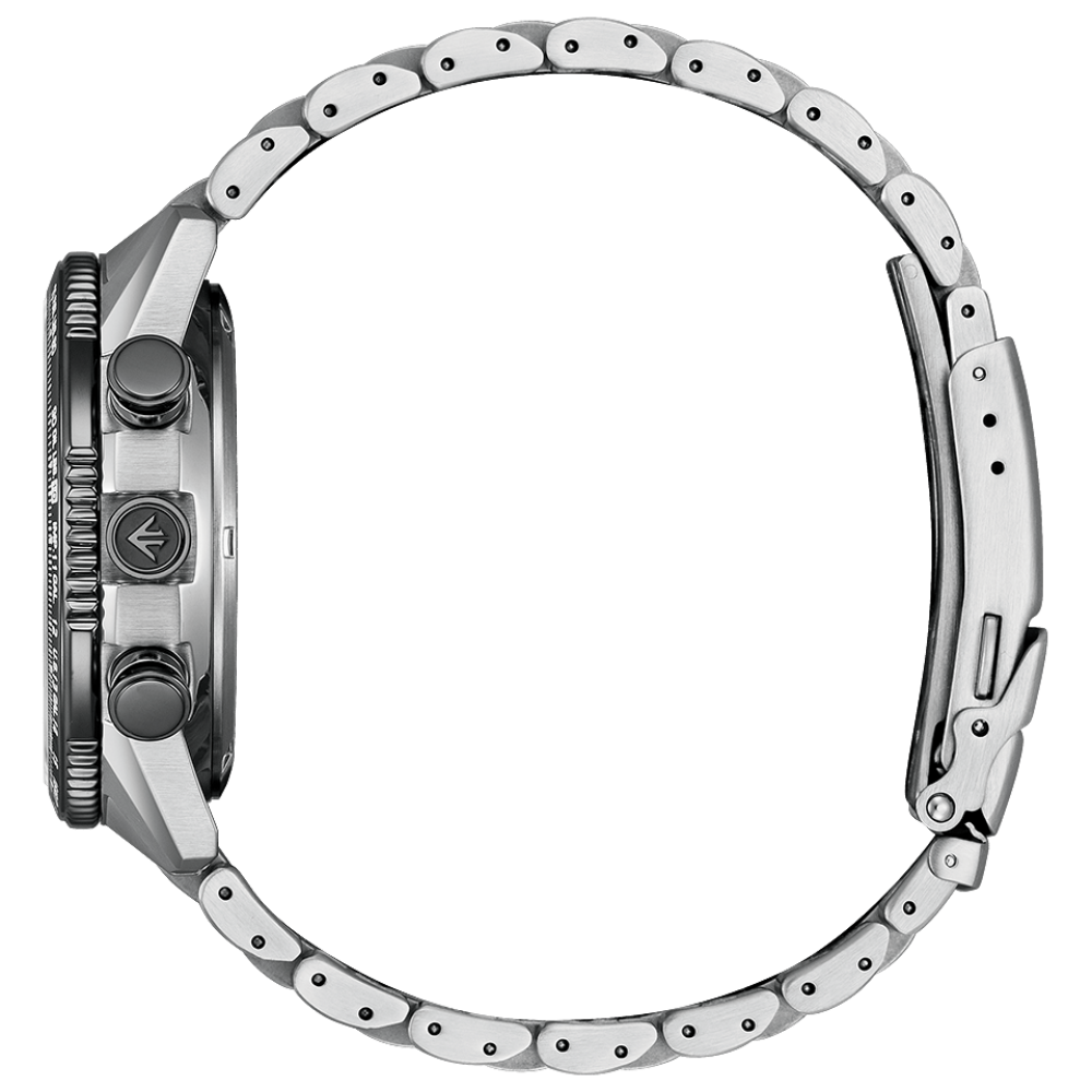 Citizen Promaster Sky JV2006-55H - men's watch manufactured by Citizen. It is equipped with Japanese solar quartz movement and U830 calibre. Stainless steel case of round shape. Case dimensions are 43 mm. in diameter and 13.8 mm. in thickness. The dial of this Citizen watch is lcd, gray. Display type: analog-digital. This timepiece has sapphire, antireflection coating glass. Stainless steel band, band color: silver. 200 m. water resistance. The watch is from Promaster collection. The following features are equipped: antimagnetic, glowing hands, glowing markers, slide rule, power reserve indicator, perpetual calendar, date, day, chronograph, world time, alarm.