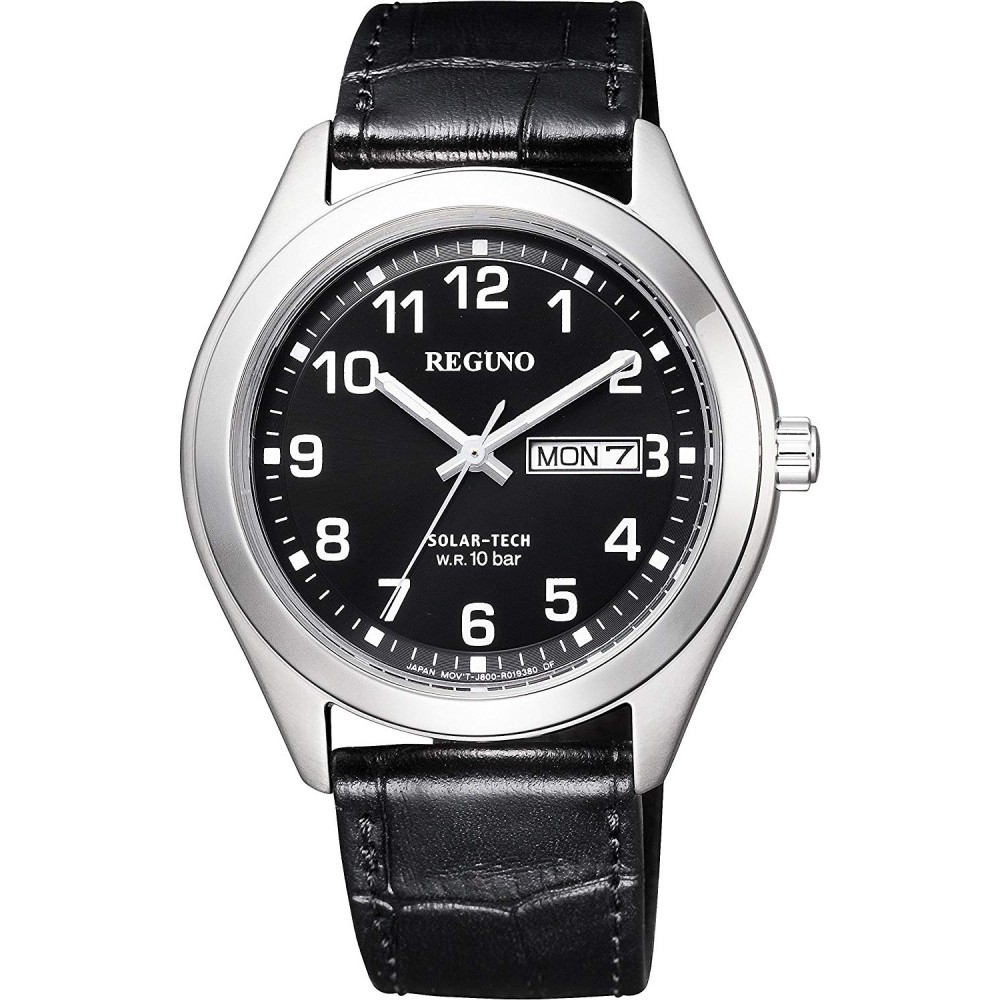 CITIZEN REGUNO KM1-016-50 - men's watch manufactured by Citizen. It has Japanese solar quartz movement and J800 calibre. Stainless steel case of round shape. Case dimensions are 40 mm. in diameter and 10 mm. in thickness. The dial of this Citizen watch is black. Display type: analog. This timepiece has mineral glass. Leather band, band color: black. 100 m. water resistance. The watch is from Citizen Reguno collection. The following features are equipped: date, day, glowing hands, glowing markers.