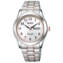 Citizen Reguno KM1-237-93 - men's watch made by Citizen. It is equipped with Japanese solar quartz movement and J800 calibre. Stainless steel, gold plated case of round shape. Case dimensions are 37.5 mm. in diameter and 9.5 mm. in thickness. The dial of this Citizen watch is silver. Display type: analog. This timepiece has mineral glass. Stainless steel, gold plated band, band color: silver, gold. 100 m. water resistance. The watch is from Citizen Reguno collection. The following features are equipped: date, day.