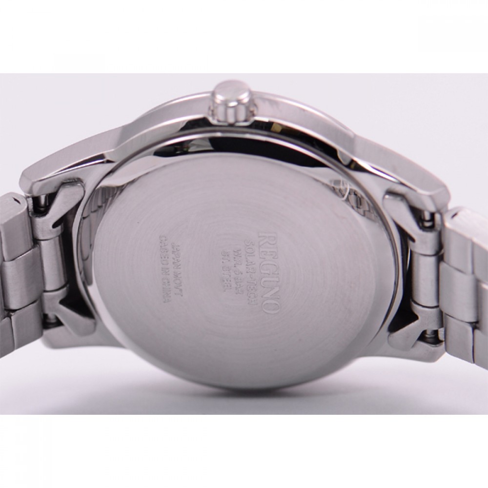 CITIZEN REGUNO KM4-015-71 - ladies watch manufactured by Citizen. It is equipped with Japanese solar quartz movement and J710 calibre. Stainless steel case of round shape. Case dimensions are 27.4 mm. in diameter and 8.7 mm. in thickness. The dial of this Citizen watch is blue. Display type: analog. This timepiece has mineral glass. Stainless steel band, band color: silver. 50 m. water resistance. The watch is from Citizen Reguno collection. The following features are equipped: date.
