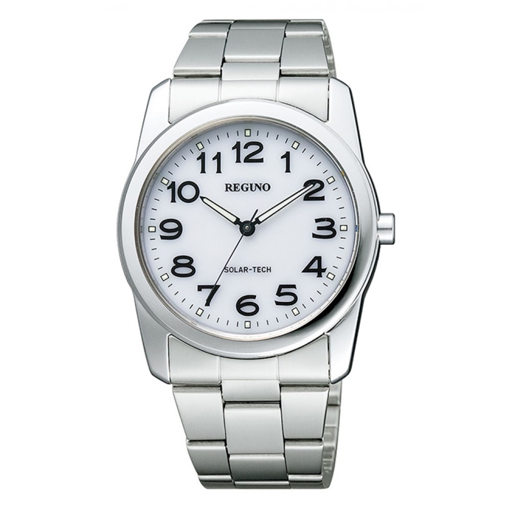 Citizen Reguno RS25-0211A - men's watch manufactured by Citizen. It has Japanese solar quartz movement and E031 calibre. Stainless steel case of round shape. Case dimensions are 36.8 mm. in diameter and 7.3 mm. in thickness. The dial of this Citizen watch is white. Display type: analog. This timepiece has mineral glass. Stainless steel band, band color: silver. 50 m. water resistance. The watch is from Citizen Reguno collection. The following features are equipped: glowing hands, glowing markers.