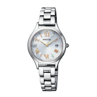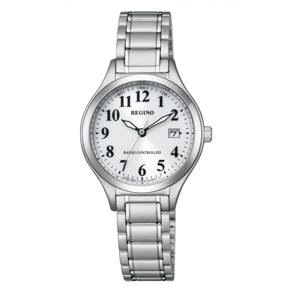 Citizen Reguno Solar-tech Radio Wave KS1-210-21 - ladies watch produced by Citizen. It has Japanese solar quartz movement and H0F6 calibre. Stainless steel case of round shape. Case dimensions are 28 mm. in diameter and 7.6 mm. in thickness. The dial of this Citizen watch is silver. Display type: analog. This timepiece has mineral glass. Stainless steel band, band color: silver. 50 m. water resistance. The watch is from Citizen Reguno collection. The following features are equipped: radio controlled, date, glowing hands, perpetual calendar.