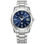 CItizen The Citizen AQ4080-52L - men's watch produced by Citizen. It is equipped with Japanese solar quartz movement and A060 calibre. Stainless steel, hard coating case of round shape. Case dimensions are 37.2 mm. in diameter and 10.2 mm. in thickness. The dial of this Citizen watch is blue. Display type: analog. This timepiece has sapphire, super clear coating glass. Stainless steel, hard coating band, band color: silver. 100 m. water resistance. The watch is from The Citizen collection. The following features are equipped: antimagnetic, power reserve indicator, date, perpetual calendar.