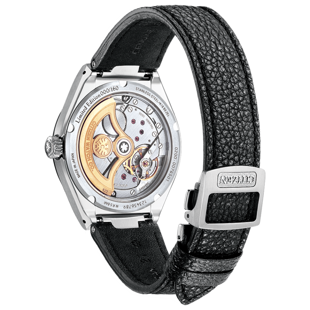 Citizen The Citizen "CITIZEN" brand watch 100th anniversary limited edition model NC0210-11A - men's watch produced by Citizen. It is equipped with Japanese automatic movement and 0200 calibre. Stainless steel, 18k white gold case of round shape. Case dimensions are 40 mm. in diameter and 10.9 mm. in thickness. The dial of this Citizen watch is silver. Display type: analog. This timepiece has sapphire, clarity coating glass. Calfskin + lacquer band, band color: black. 50 m. water resistance. The watch is from The Citizen collection. The following features are equipped: limited edition, chronometer.