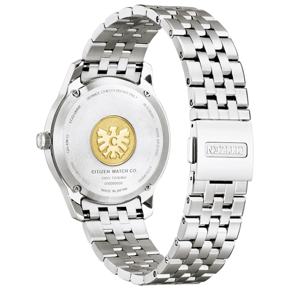 Citizen The Citizen Limited Edition AQ6100-56A - men's watch made by Citizen. It is equipped with Japanese solar quartz movement and 0100 calibre. Stainless steel, duratect treatment case of round shape. Case dimensions are 39 mm. in diameter and 9.7 mm. in thickness. The dial of this Citizen watch is silver. Display type: analog. This timepiece has sapphire, clarity coating glass. Stainless steel band, band color: silver. 50 m. water resistance. The watch is from The Citizen collection. The following features are equipped: antimagnetic, limited edition.