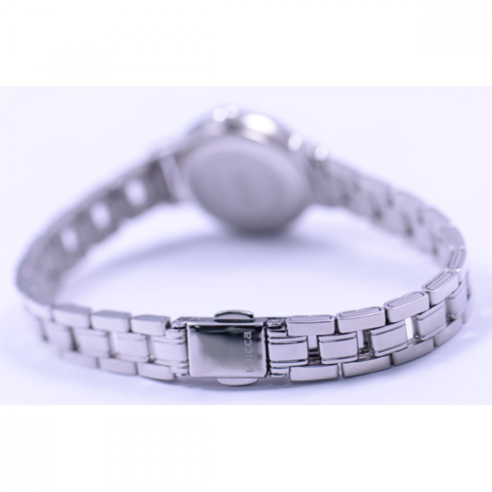 CITIZEN WICCA KH9-914-91 - ladies watch made by Citizen. It has Japanese solar quartz movement and E031 calibre. Stainless steel case of round shape. Case dimensions are 24 mm. in diameter and 7.1 mm. in thickness. The dial of this Citizen watch is pink. Display type: analog. This timepiece has mineral glass. Stainless steel band, band color: silver. 50 m. water resistance. The watch is from Wicca collection.