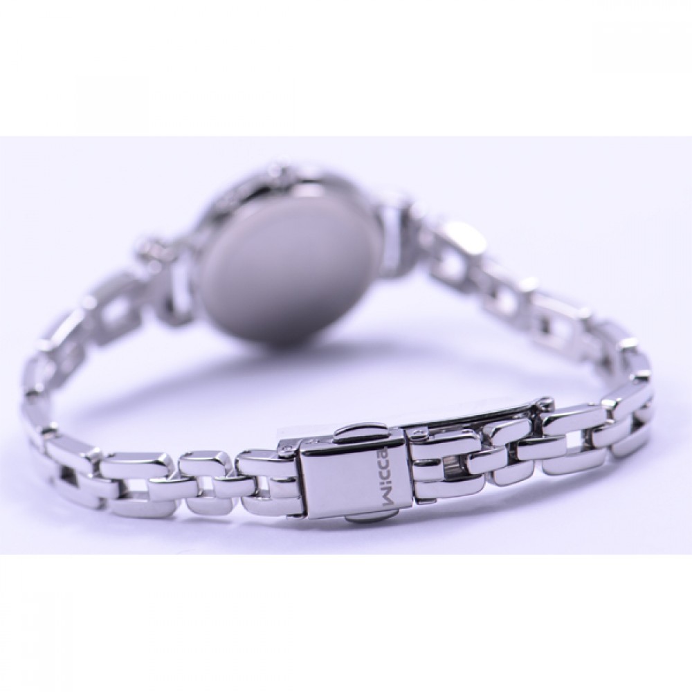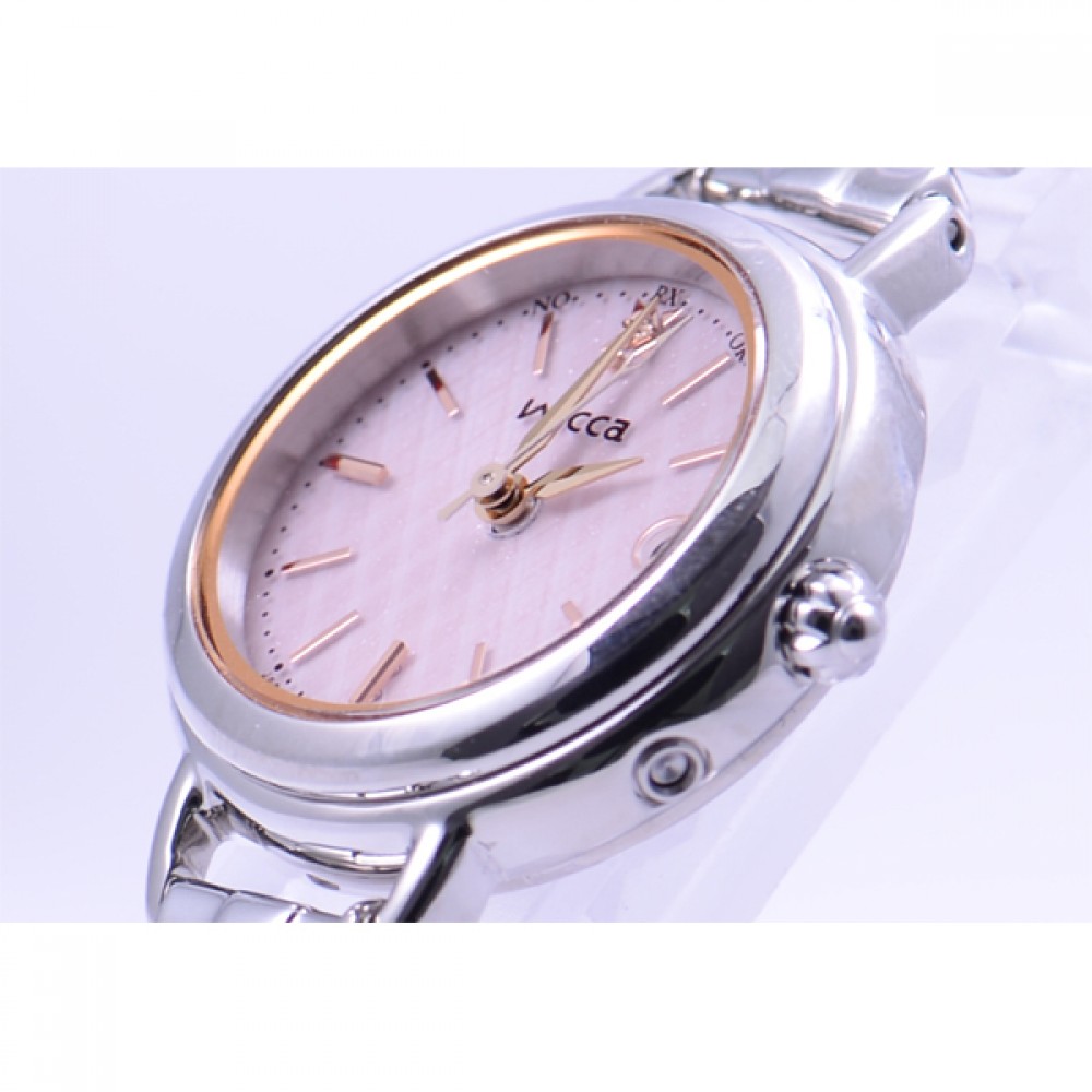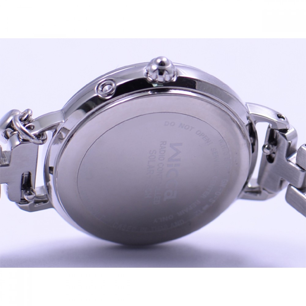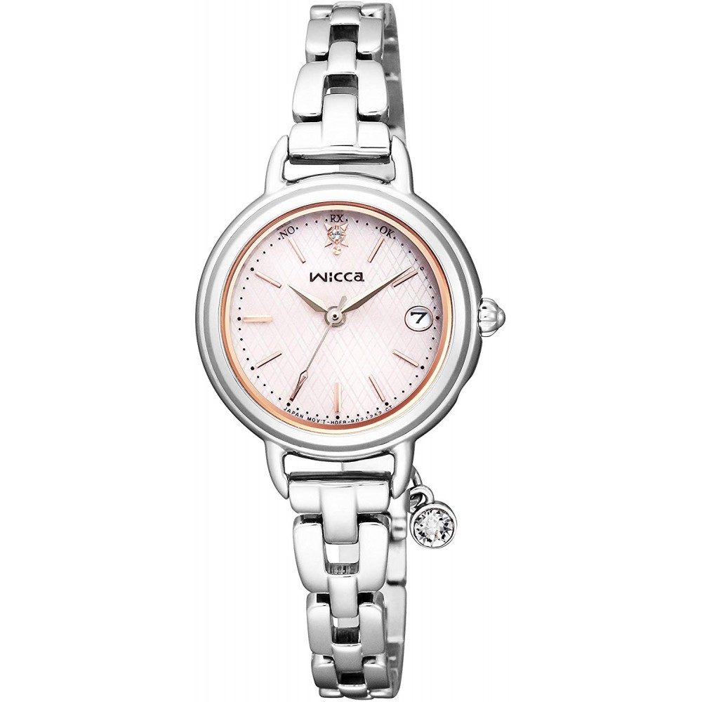 CITIZEN WICCA KL0-561-11 - ladies watch made by Citizen. It has Japanese solar quartz movement and H0F8 calibre. Stainless steel case of round shape. Case dimensions are 25.5 mm. in diameter and 7.2 mm. in thickness. The dial of this Citizen watch is pink. Display type: analog. This timepiece has mineral glass. Stainless steel band, band color: silver. 50 m. water resistance. The watch is from Wicca collection. The following features are equipped: antimagnetic, date, perpetual calendar, crystal set, radio controlled.