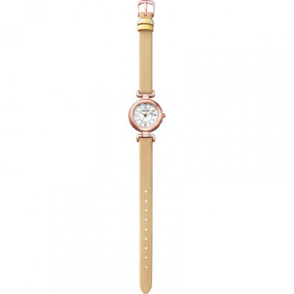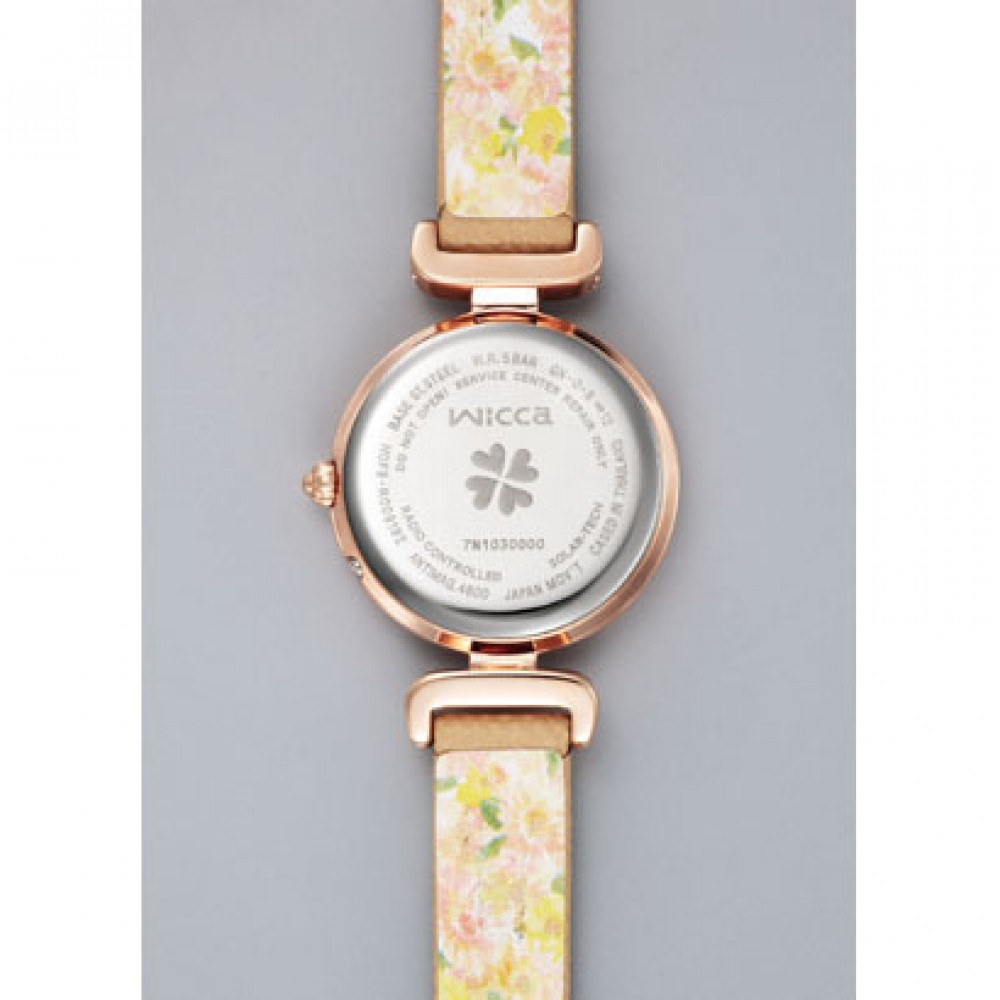 CITIZEN WICCA KL0-669-13 - ladies watch made by Citizen. It has Japanese solar quartz movement and H0F8 calibre. Stainless steel, gold plated case of round shape. Case dimensions are 25.5 mm. in diameter and 7.2 mm. in thickness. The dial of this Citizen watch is blue. Display type: analog. This timepiece has mineral glass. Leather band, band color: beige. 50 m. water resistance. The watch is from Wicca collection. The following features are equipped: antimagnetic, crystal set, date, perpetual calendar, radio controlled.