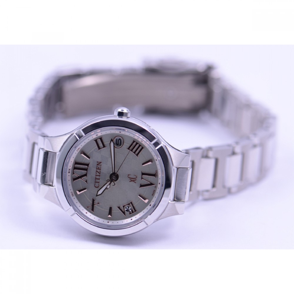 CITIZEN XC ES8080-68A - ladies watch produced by Citizen. It has Japanese solar quartz movement and H058 calibre. Titanium, hard coating case of round shape. Case dimensions are 25 mm. in diameter and 7.7 mm. in thickness. The dial of this Citizen watch is white. Display type: analog. This timepiece has sapphire, antireflection coating glass. Titanium, hard coating band, band color: silver. 50 m. water resistance. The watch is from xC collection. The following features are equipped: radio controlled, perpetual calendar, date, antimagnetic, glowing hands.
