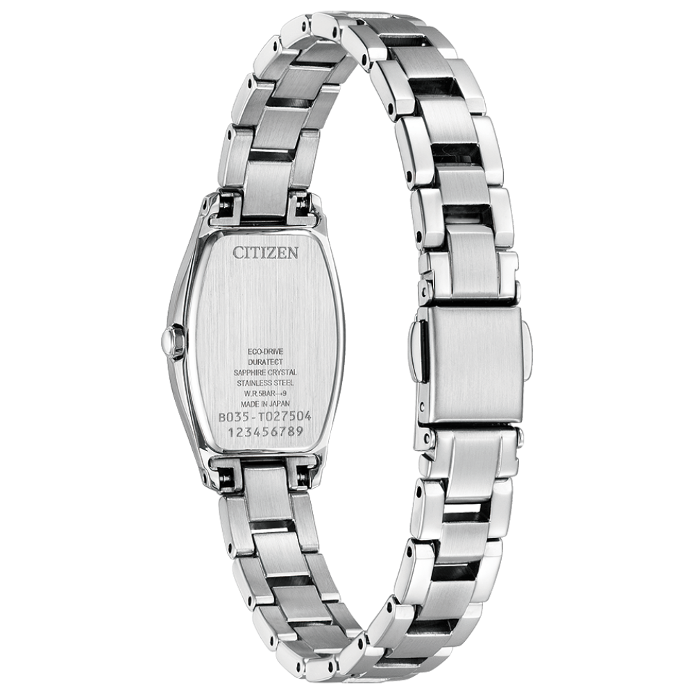 - Features: Movement - Solar Quartz; Case Material - Stainless Steel, Duratect Treatment; Case Size - 19.5; Water Resistance - 50; Glass - Sapphire