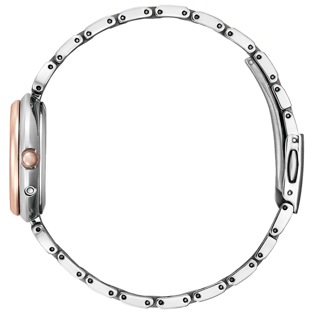 Citizen xC Mizu Collection 25th Anniversary Limited Model ES9465-68W - ladies watch made by Citizen. It is equipped with Japanese solar quartz movement and H060 calibre. Titanium, hard coating, gold plated case of round shape. Case dimensions are 29 mm. in diameter and 8.2 mm. in thickness. The dial of this Citizen watch is mother of pearl. Display type: analog. This timepiece has sapphire, antireflection coating glass. Titanium, hard coating, gold plated band, band color: silver, gold. 50 m. water resistance. The watch is from xC collection. The following features are equipped: limited edition, radio controlled, antimagnetic, glowing hands, power reserve indicator, world time, diamond set, perpetual calendar, date.