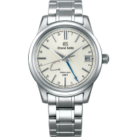 Grand Seiko Heritage SBGE279 - men's watch produced by Seiko. It has Japanese spring drive movement and 9R66 calibre. Stainless steel case of round shape. Case dimensions are 40 mm. in diameter and 13.5 mm. in thickness. The dial of this Grand Seiko watch is silver. Display type: analog. This timepiece has sapphire, antireflection coating glass. Stainless steel band, band color: silver. 100 m. water resistance. The watch is from Heritage collection. The following features are equipped: antimagnetic, dual time, screw-down crown, date, power reserve indicator.