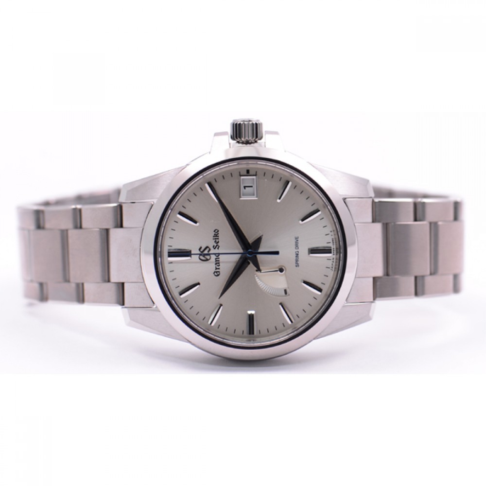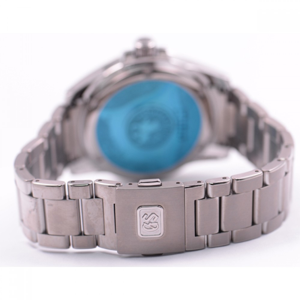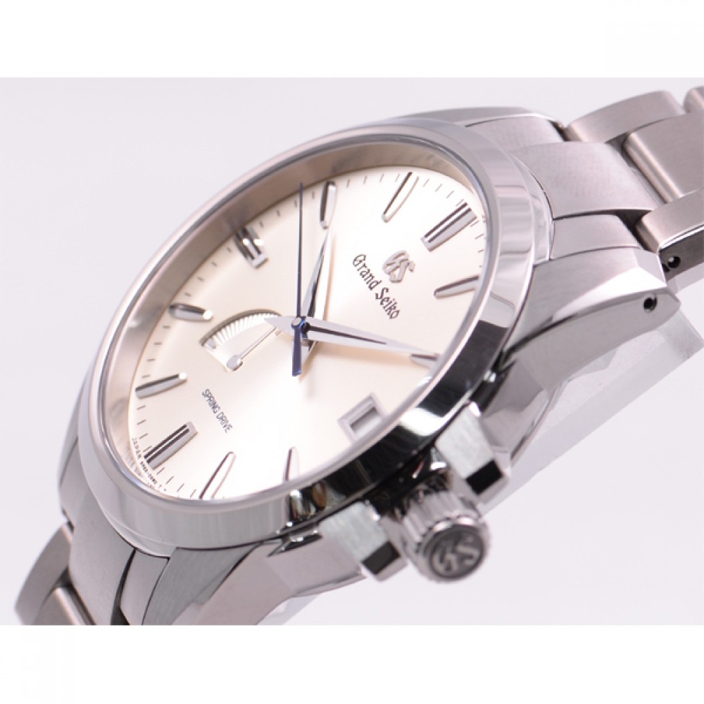 Grand Seiko SBGA279 - men's watch manufactured by Seiko. It has Japanese automatic movement and 9R65 calibre. Titanium case of round shape. Case dimensions are 39.4 mm. in diameter and 12.3 mm. in thickness. The dial of this Grand Seiko watch is silver. Display type: analog. This timepiece has sapphire, antireflection coating glass. Titanium band, band color: silver. 100 m. water resistance. The watch is from Heritage collection. The following features are equipped: date, antimagnetic, power reserve indicator, screw-down crown.