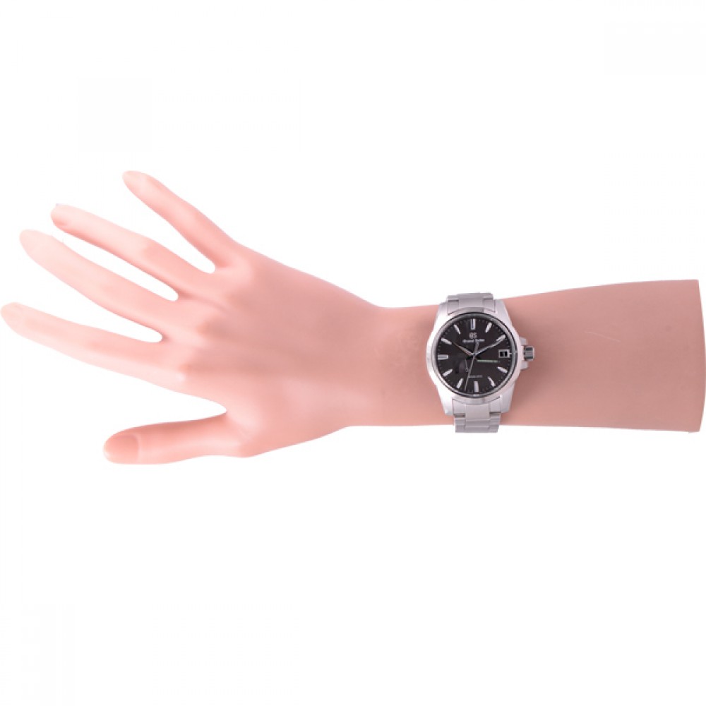 Grand Seiko SBGA281 - men's watch produced by Seiko. It has Japanese automatic movement and 9R65 calibre. Titanium case of round shape. Case dimensions are 39.4 mm. in diameter and 12.3 mm. in thickness. The dial of this Grand Seiko watch is black. Display type: analog. This timepiece has sapphire, antireflection coating glass. Titanium band, band color: silver. 100 m. water resistance. The watch is from Heritage collection. The following features are equipped: date, antimagnetic, power reserve indicator, screw-down crown.