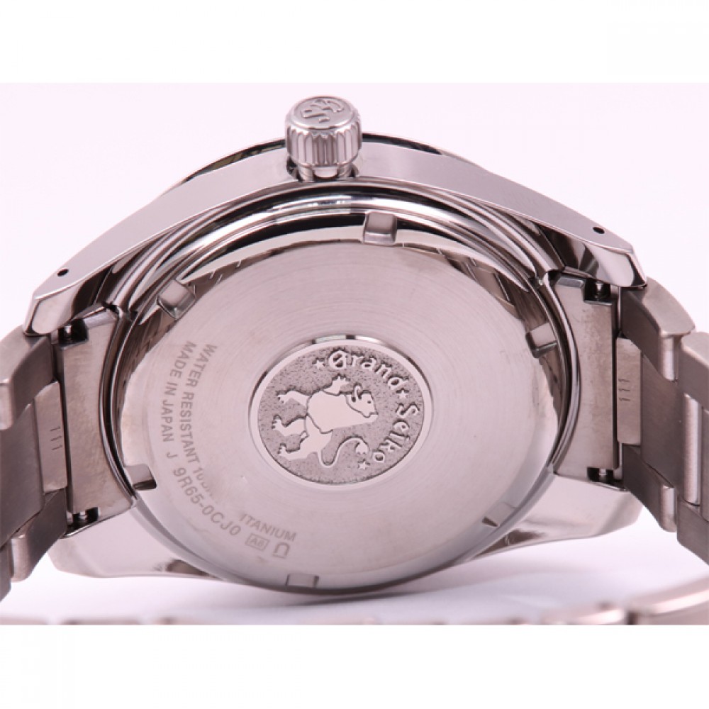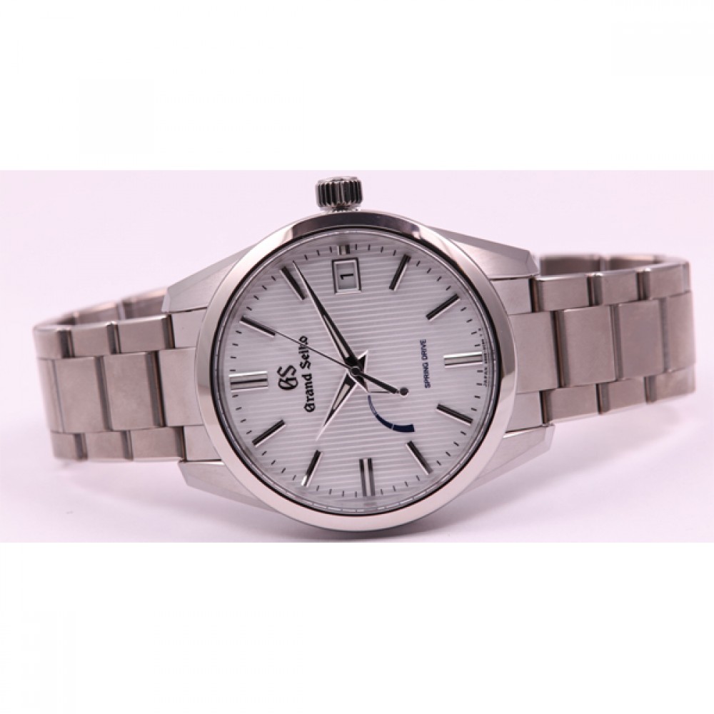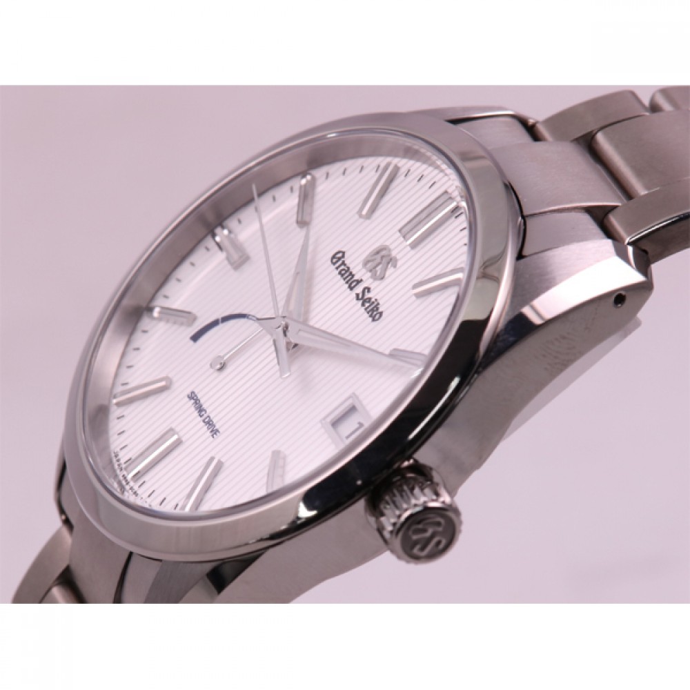 Grand Seiko SBGA347 - men's watch made by Seiko. It has Japanese automatic movement and 9R65 calibre. Titanium case of round shape. Case dimensions are 40.5 mm. in diameter and 12.9 mm. in thickness. The dial of this Grand Seiko watch is white, silver. Display type: analog. This timepiece has sapphire, antireflection coating glass. Titanium band, band color: silver. 100 m. water resistance. The watch is from Heritage collection. The following features are equipped: antimagnetic, date, power reserve indicator, screw-down crown, glowing hands, glowing markers.