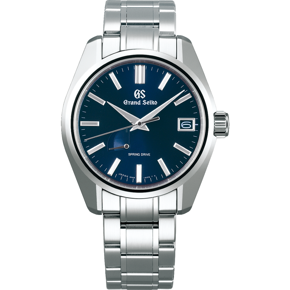 Grand Seiko SBGA375 - men's watch made by Seiko. It has Japanese automatic movement and 9R65 calibre. Stainless steel case of round shape. Case dimensions are 40 mm. in diameter and 12.5 mm. in thickness. The dial of this Grand Seiko watch is blue. Display type: analog. This timepiece has sapphire, antireflection coating glass. Stainless steel band, band color: silver. 100 m. water resistance. The watch is from Heritage collection. The following features are equipped: antimagnetic, date, power reserve indicator, screw-down crown, limited edition.