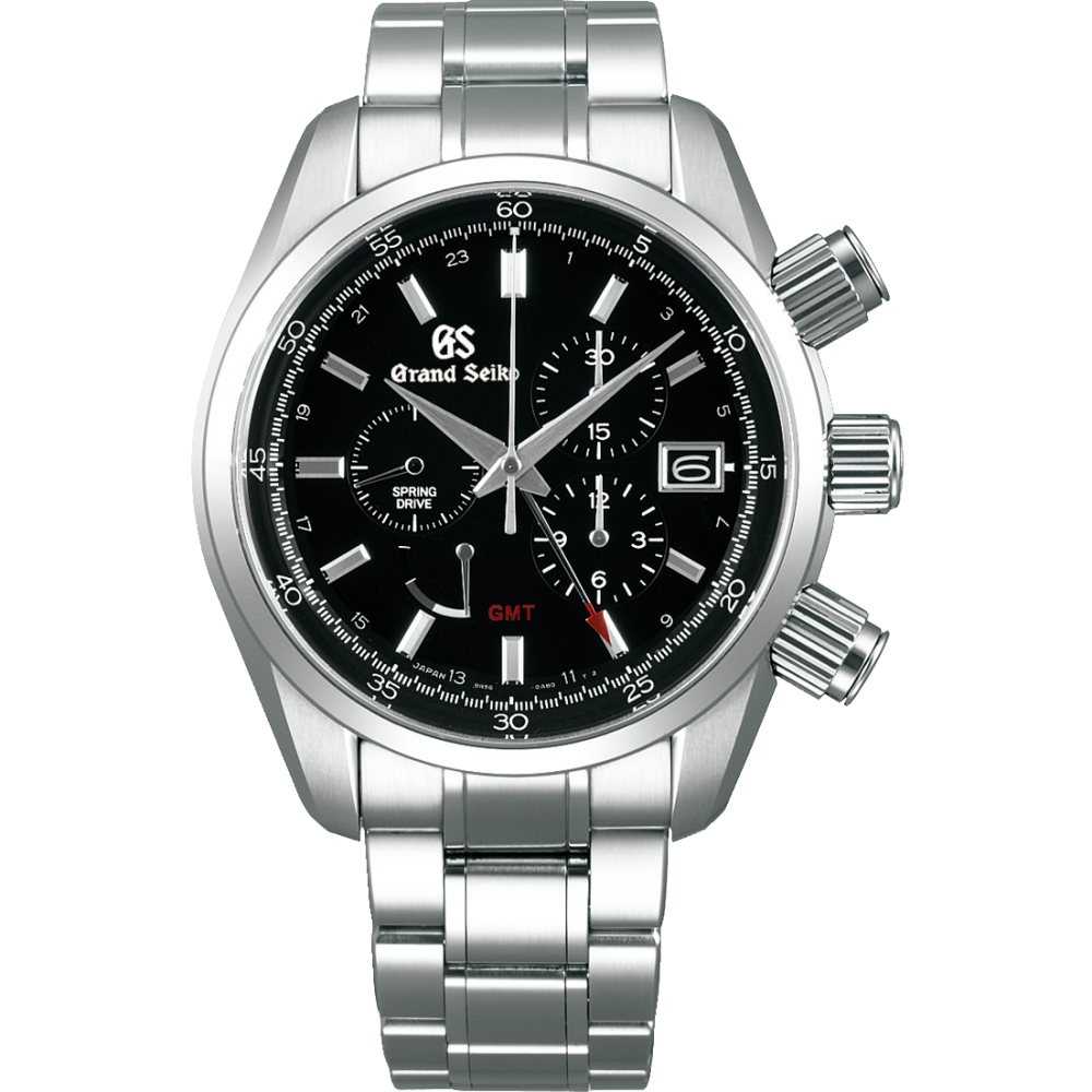 Grand Seiko SBGC203 - men's watch made by Seiko. It has Japanese automatic movement and 9R86 calibre. Stainless steel case of round shape. Case dimensions are 43.5 mm. in diameter and 16.1 mm. in thickness. The dial of this Grand Seiko watch is black. Display type: analog. This timepiece has sapphire, antireflection coating glass. Stainless steel band, band color: silver. 100 m. water resistance. The watch is from Grand Seiko Sport collection. The following features are equipped: antimagnetic, date, chronograph, dual time, limited edition, power reserve indicator, screw-down crown.