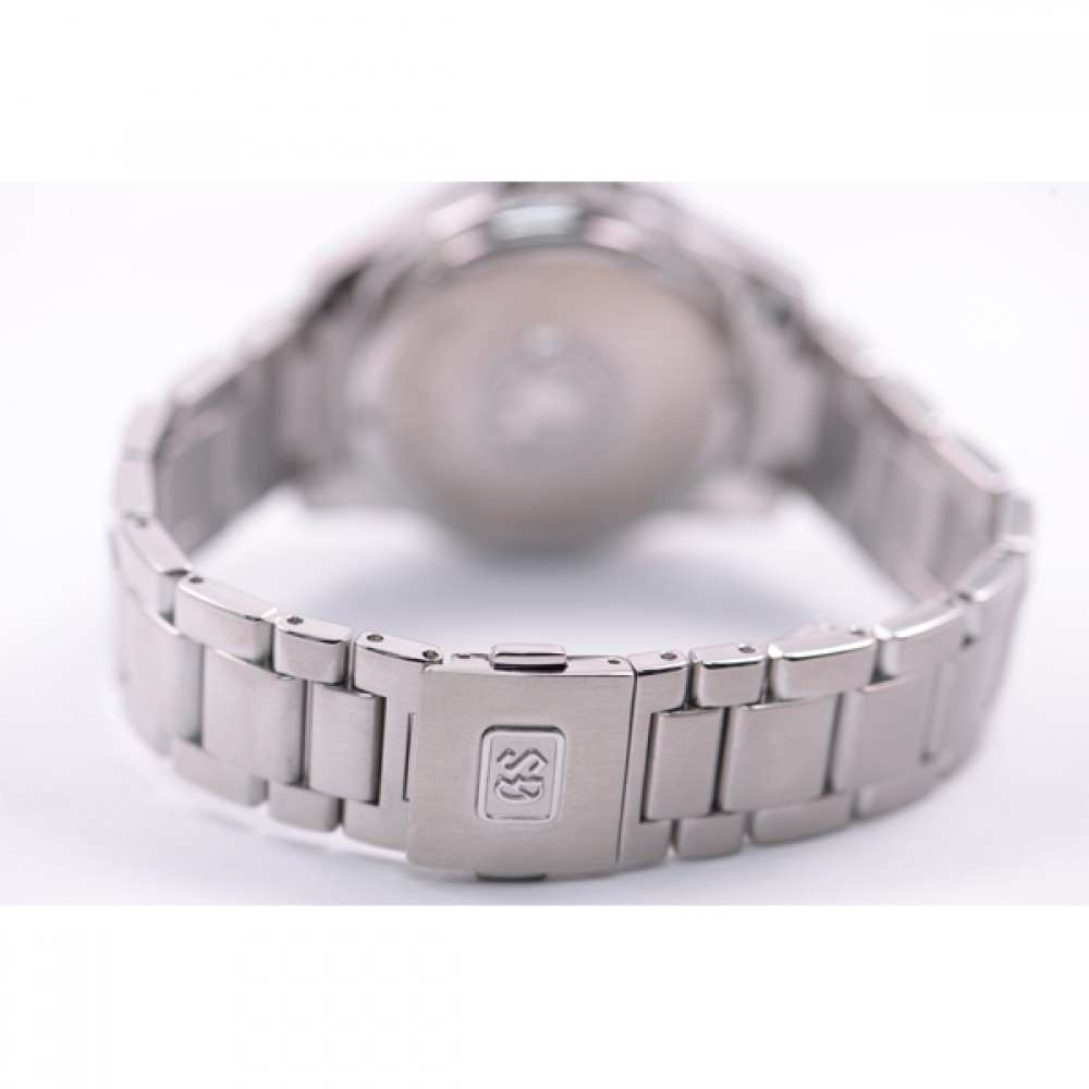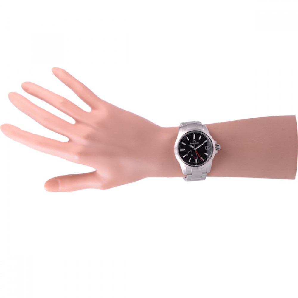 Grand Seiko SBGE213 - men's watch manufactured by Seiko. It has Japanese automatic movement and 9R66 calibre. Stainless steel case of round shape. Case dimensions are 39.4 mm. in diameter and 13.6 mm. in thickness. The dial of this Grand Seiko watch is black. Display type: analog. This timepiece has sapphire, antireflection coating glass. Stainless steel band, band color: silver. 100 m. water resistance. The watch is from Heritage collection. The following features are equipped: date, dual time, screw-down crown, power reserve indicator.