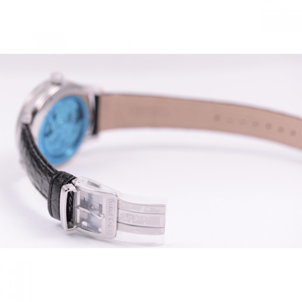 Grand Seiko SBGE227 - men's watch made by Seiko. It has Japanese automatic movement and 9R66 calibre. Stainless steel case of round shape. Case dimensions are 40.2 mm. in diameter and 14 mm. in thickness. The dial of this Grand Seiko watch is brown. Display type: analog. This timepiece has sapphire, antireflection coating glass. Crocodile leather band, band color: black. 100 m. water resistance. The watch is from Grand Seiko Elegance collection. The following features are equipped: date, power reserve indicator, dual time, antimagnetic.