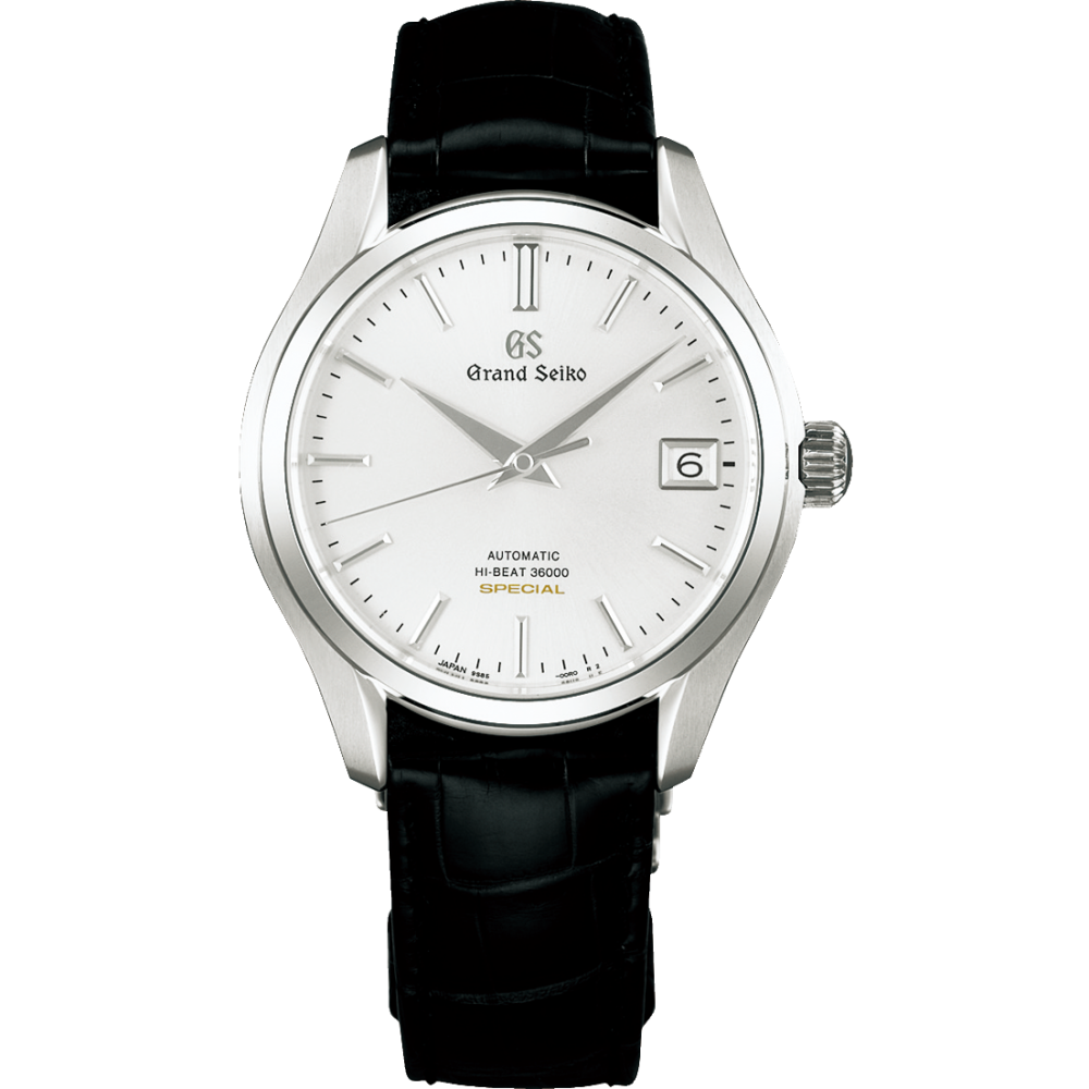 Grand Seiko SBGH219 - men's watch manufactured by Seiko. It has Japanese automatic movement and 9S85 calibre. Gold case of round shape. Case dimensions are 38 mm. in diameter and 13.5 mm. in thickness. The dial of this Grand Seiko watch is white. Display type: analog. This timepiece has sapphire, antireflection coating glass. Crocodile leather band, band color: black. 100 m. water resistance. The watch is from Heritage collection. The following features are equipped: date, antimagnetic, limited edition.