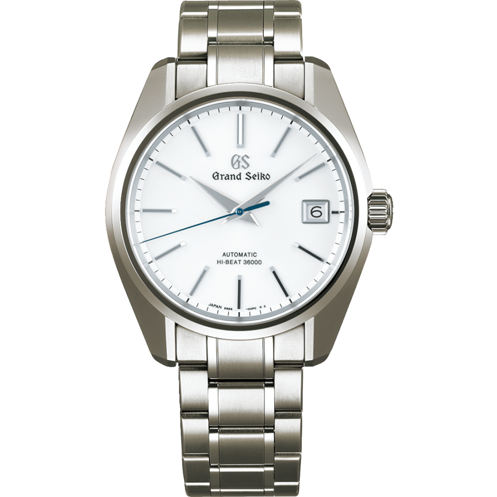 Grand Seiko SBGH243 - men's watch produced by Seiko. It is equipped with Japanese automatic movement and 9S85 calibre. Titanium case of round shape. Case dimensions are 40 mm. in diameter and 13.3 mm. in thickness. The dial of this Grand Seiko watch is white. Display type: analog. This timepiece has sapphire, antireflection coating glass. Titanium band, band color: silver. 100 m. water resistance. The watch is from Heritage collection. The following features are equipped: antimagnetic, date, screw-down crown, limited edition.