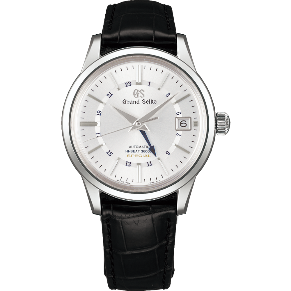 Grand Seiko SBGJ207 - men's watch produced by Seiko. It has Japanese automatic movement and 9S86 calibre. Gold case of round shape. Case dimensions are 39.5 mm. in diameter and 13.9 mm. in thickness. The dial of this Grand Seiko watch is silver, white. Display type: analog. This timepiece has sapphire, antireflection coating glass. Crocodile leather band, band color: black. 30 m. water resistance. The watch is from Grand Seiko Elegance collection. The following features are equipped: antimagnetic, date, dual time, limited edition.