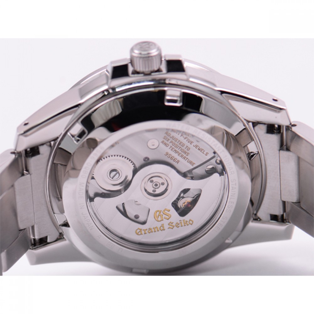 Grand Seiko SBGM227 - men's watch made by Seiko. It is equipped with Japanese automatic movement and 9S66 calibre. Stainless steel case of round shape. Case dimensions are 39.4 mm. in diameter and 14.1 mm. in thickness. The dial of this Grand Seiko watch is black. Display type: analog. This timepiece has sapphire, antireflection coating glass. Stainless steel band, band color: silver. 100 m. water resistance. The watch is from Grand Seiko Sport collection. The following features are equipped: antimagnetic, date, dual time, screw-down crown.