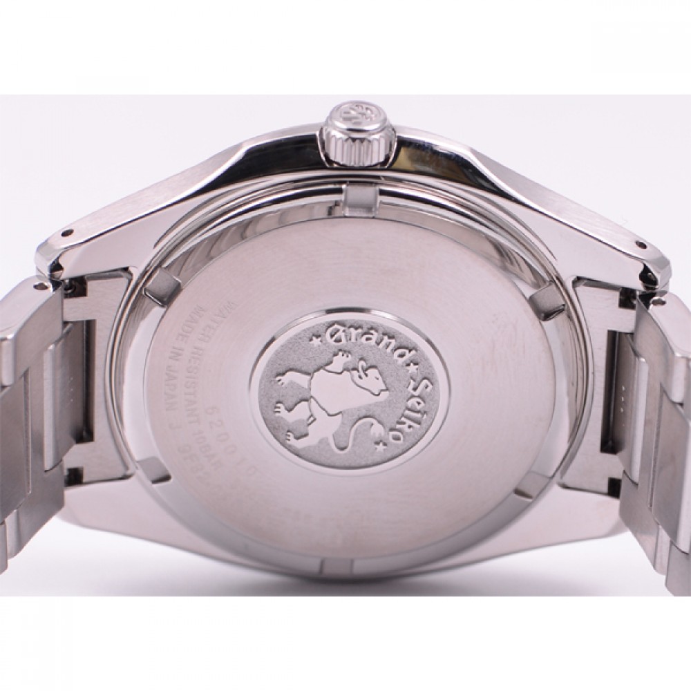Grand Seiko SBGV217 - men's watch produced by Seiko. It is equipped with Japanese quartz movement and 9F82 calibre. Stainless steel case of round shape. Case dimensions are 39 mm. in diameter and 10.4 mm. in thickness. The dial of this Grand Seiko watch is green. Display type: analog. This timepiece has sapphire, antireflection coating glass. Stainless steel band, band color: silver. 100 m. water resistance. The watch is from Heritage collection. The following features are equipped: antimagnetic, date.