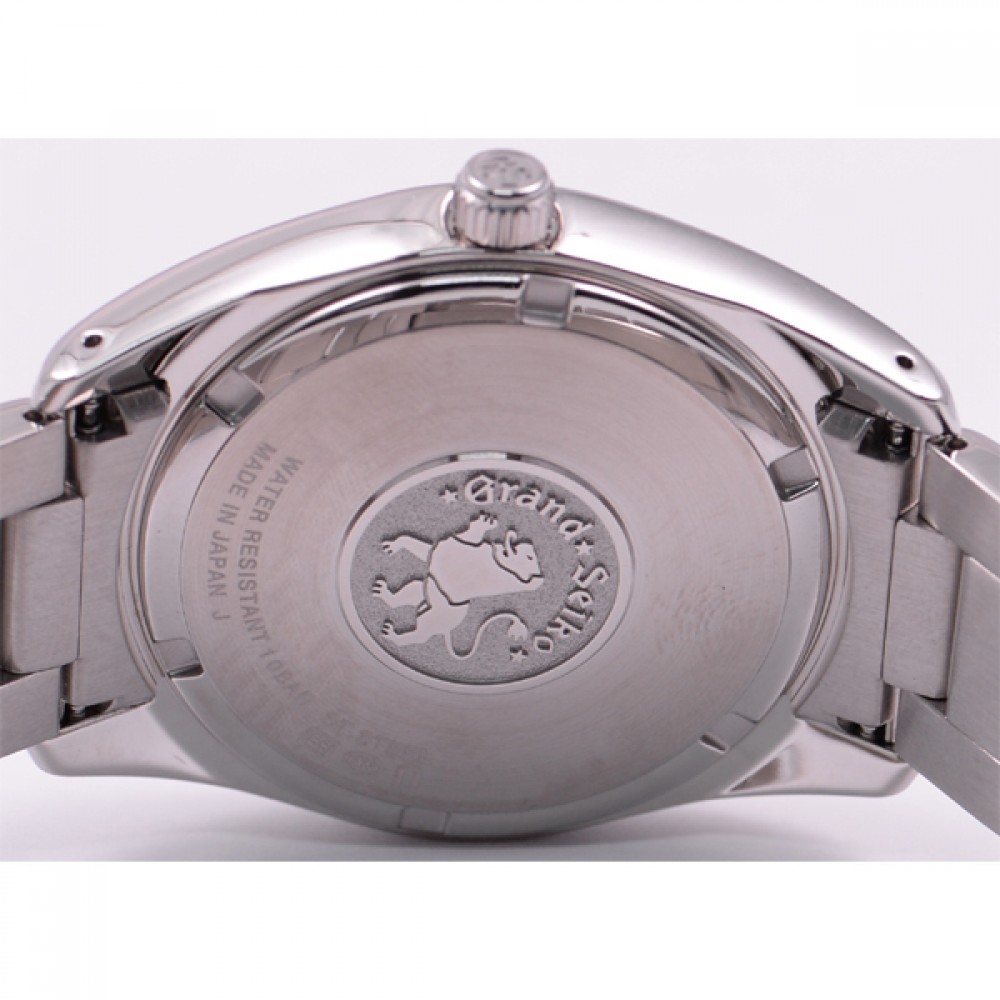 Grand Seiko SBGX261 - men's watch manufactured by Seiko. It has Japanese quartz movement and 9F62 calibre. Stainless steel case of round shape. Case dimensions are 37 mm. in diameter and 10 mm. in thickness. The dial of this Grand Seiko watch is black. Display type: analog. This timepiece has sapphire, antireflection coating glass. Stainless steel band, band color: silver. 100 m. water resistance. The watch is from Heritage collection. The following features are equipped: date, antimagnetic.