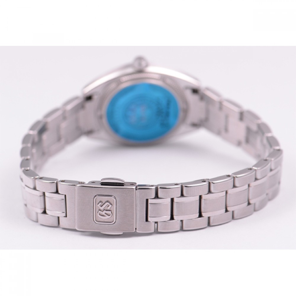 Grand Seiko STGF277 - ladies watch produced by Seiko. It is equipped with Japanese quartz movement and 4J52 calibre. Stainless steel case of round shape. Case dimensions are 26 mm. in diameter and 9.2 mm. in thickness. The dial of this Grand Seiko watch is pink. Display type: analog. This timepiece has sapphire, antireflection coating glass. Stainless steel band, band color: silver. 100 m. water resistance. The watch is from Grand Seiko Elegance collection. The following features are equipped: antimagnetic, date, diamond set.