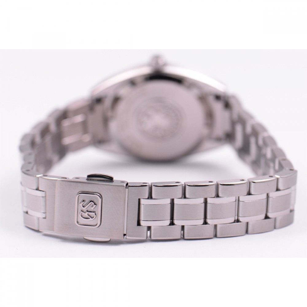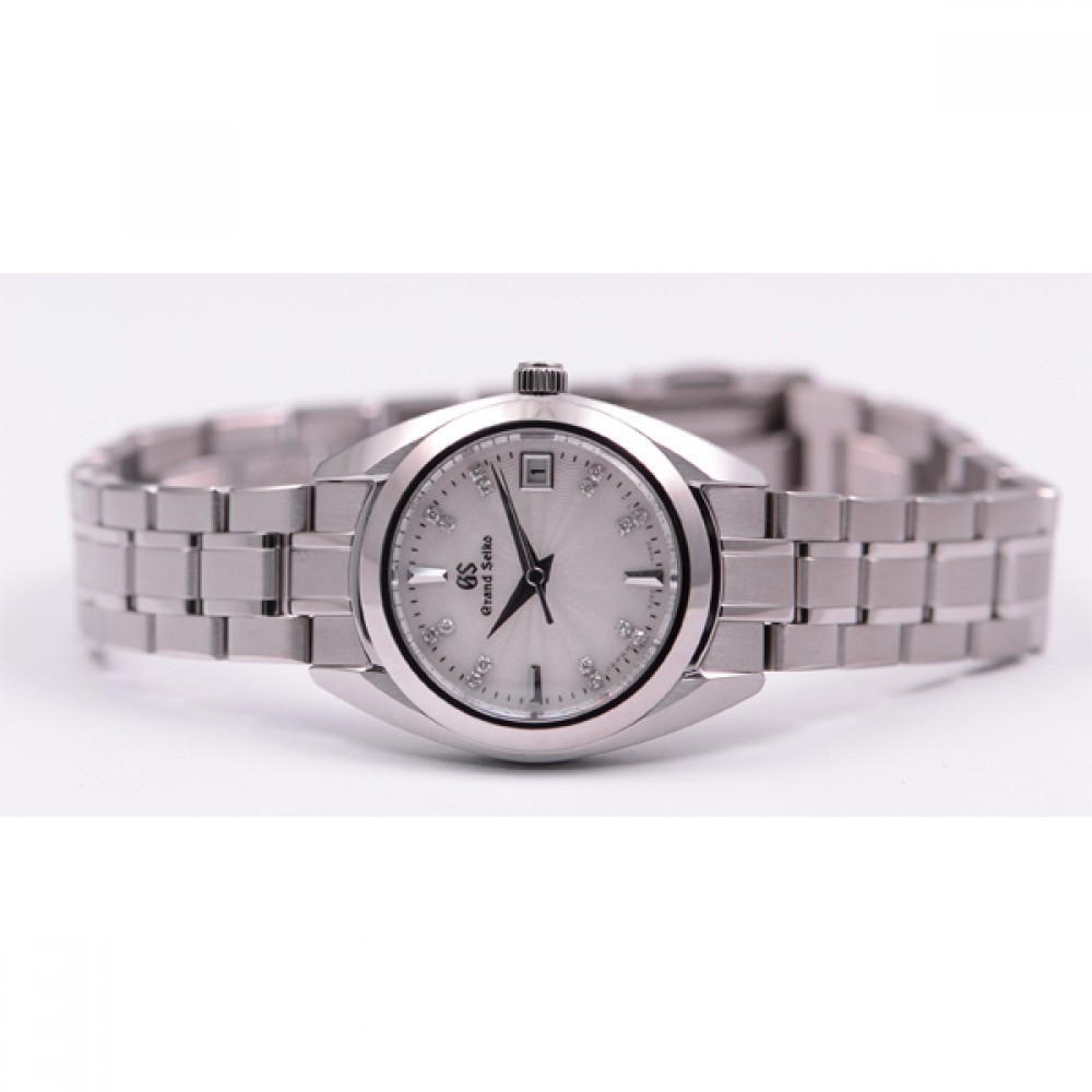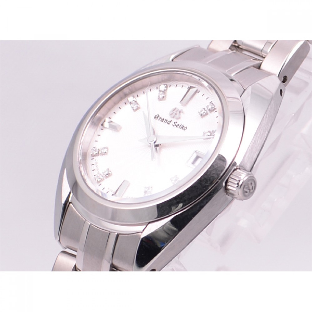 Grand Seiko STGF315 - ladies watch made by Seiko. It is equipped with Japanese quartz movement and 4J52 calibre. Titanium case of round shape. Case dimensions are 26 mm. in diameter and 9 mm. in thickness. The dial of this Grand Seiko watch is silver. Display type: analog. This timepiece has sapphire, antireflection coating glass. Titanium band, band color: silver. 100 m. water resistance. The watch is from Grand Seiko Elegance collection. The following features are equipped: antimagnetic, date, diamond set.