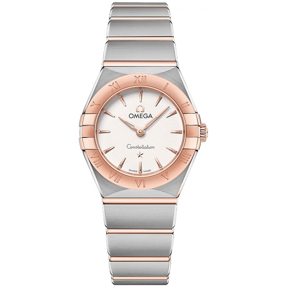 Omega Constellation Quartz 131.20.25.60.02.001 - ladies watch made by Omega. It is equipped with Swiss quartz movement and 4061 calibre. Stainless steel, 18k sedna™ gold case of round shape. Case dimensions are 25 mm. in diameter and 8.1 mm. in thickness. The dial of this Omega watch is silver. Display type: analog. This timepiece has sapphire, antireflection coating glass. Stainless steel, 18k sedna™ gold band, band color: silver, gold. 30 m. water resistance. The watch is from Constellation collection.