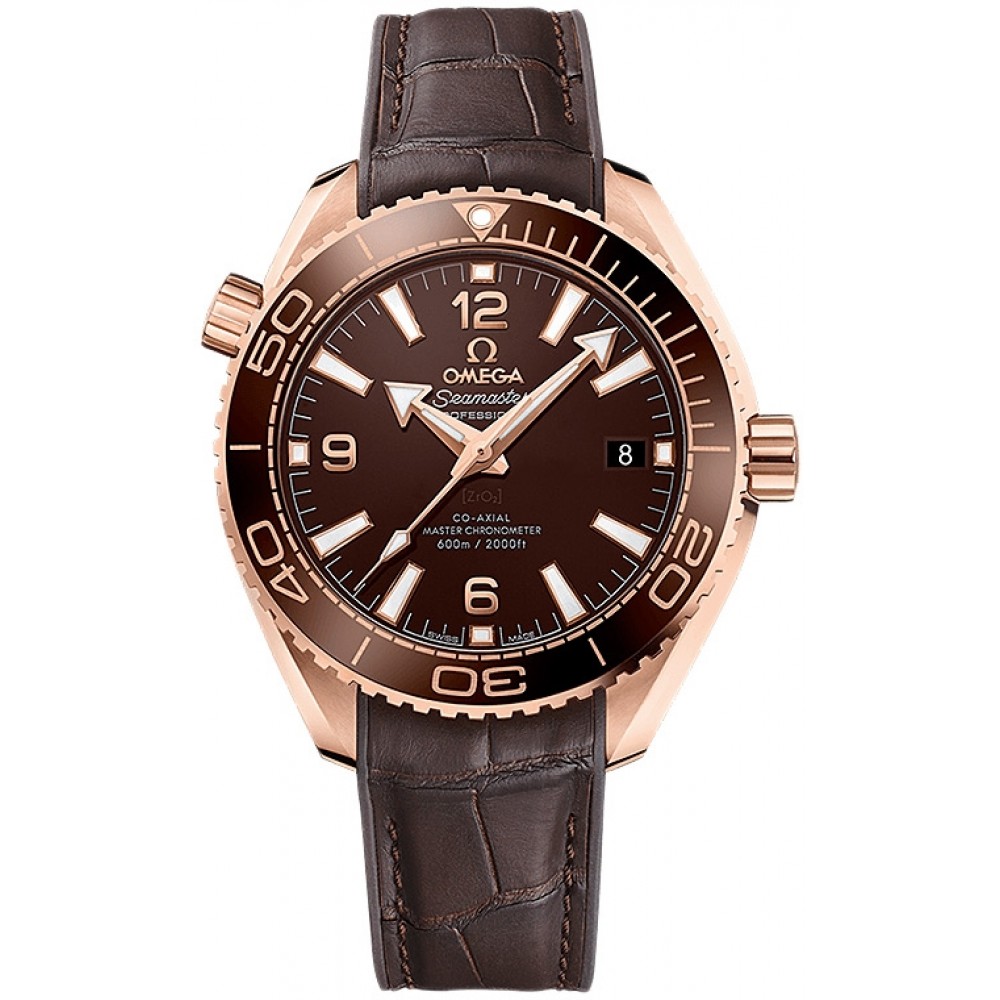 Omega Seamaster Planet Ocean 600M Master Chronometer 215.63.40.20.13.001 - ladies watch made by Omega. It has Swiss automatic movement and 8800 calibre. 18k sedna™ gold case of round shape. Case dimensions are 39.5 mm. in diameter and 14.2 mm. in thickness. The dial of this Omega watch is brown ceramic. Display type: analog. This timepiece has sapphire, antireflection coating glass. Alligator, rubber band, band color: brown. 600 m. water resistance. The watch is from Seamaster collection. The following features are equipped: screw-down crown, chronometer, date, antimagnetic, glowing hands, glowing markers.