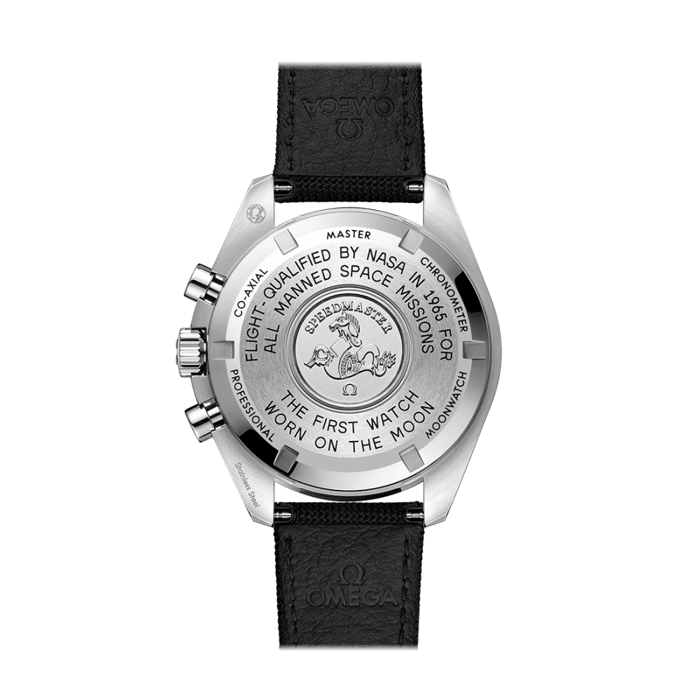 Omega Speedmaster Moonwatch Professional Master Chronometer 310.32.42.50.01.001 - men's watch produced by Omega. It is equipped with Swiss hand wind movement and 3861 calibre. Stainless steel, aluminum case of round shape. Case dimensions are 42 mm. in diameter and 13.2 mm. in thickness. The dial of this Omega watch is black. Display type: analog. This timepiece has hesalite glass. Nylon band, band color: black. 50 m. water resistance. The watch is from Speedmaster collection. The following features are equipped: chronograph, glowing hands, glowing markers, antimagnetic, chronometer.