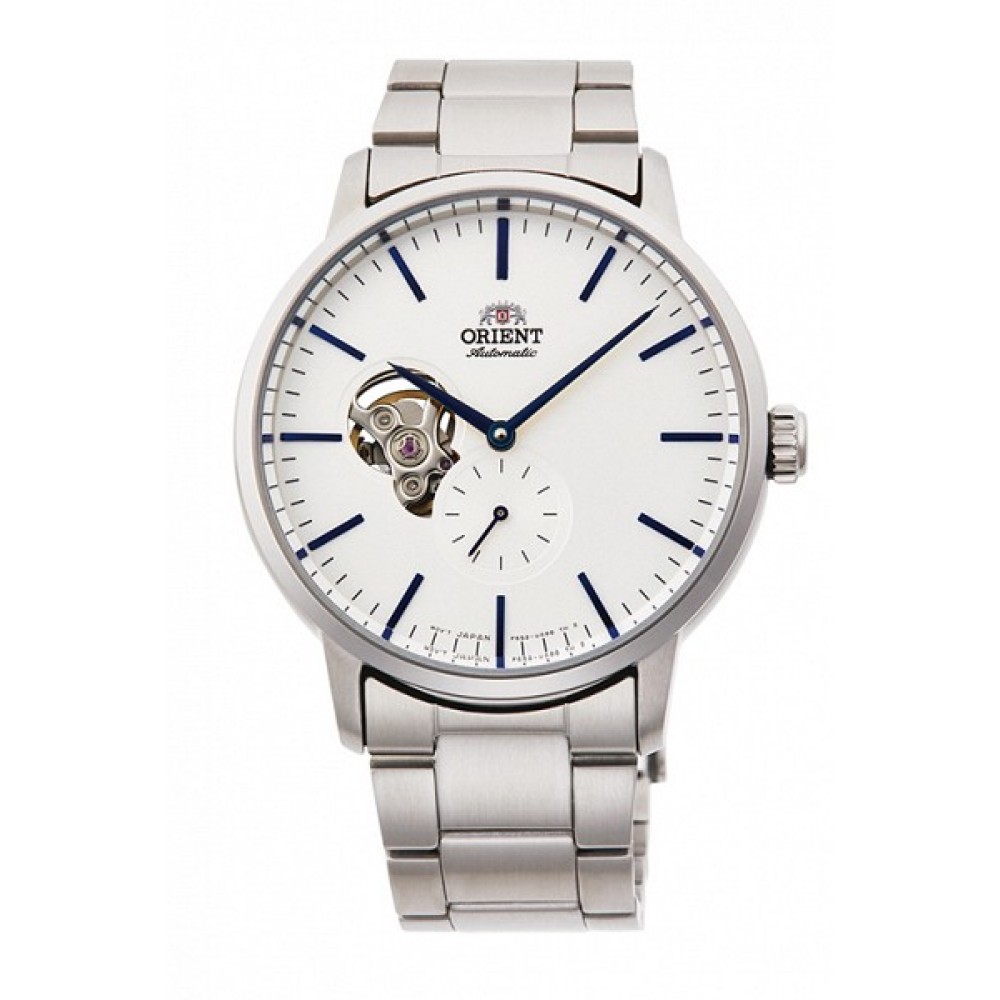 Orient Contemporary RN-AR0102S - men's watch made by Orient. It has Japanese automatic movement and F6S22 calibre. Stainless steel case of round shape. Case dimensions are 40 mm. in diameter and 11.9 mm. in thickness. The dial of this Orient watch is white. Display type: analog. This timepiece has mineral glass. Stainless steel band, band color: silver. 100 m. water resistance. The watch is from Orient Contemporary collection. The following features are equipped: antimagnetic.