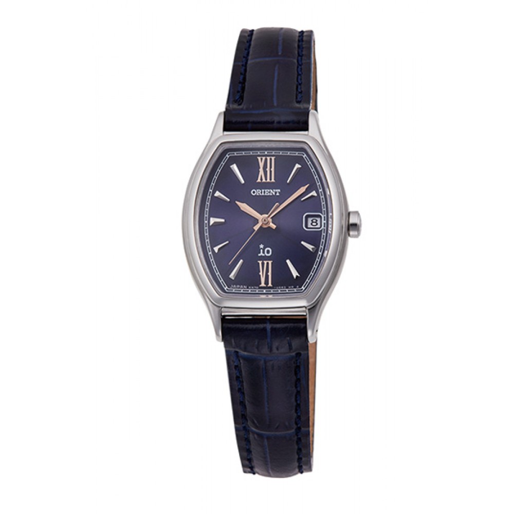 ORIENT IO LIMITED MODEL RN-WG0015L - ladies watch produced by Orient. It is equipped with Japanese solar quartz movement and KN700 calibre. Stainless steel case of tonneau shape. Case dimensions are 24.1 mm. in diameter and 7.8 mm. in thickness. The dial of this Orient watch is blue. Display type: analog. This timepiece has sapphire glass. Leather band, band color: blue. 50 m. water resistance. The watch is from IO collection. The following features are equipped: date, limited edition.