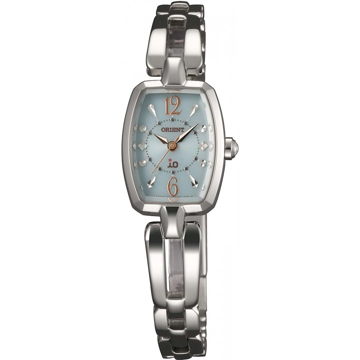 Orient iO Sweet Jewelry WI0141WD - ladies watch made by Orient. It is equipped with Japanese solar quartz movement and KK500 calibre. Stainless steel case of tonneau shape. Case dimensions are 18.4 mm. in diameter and 7.3 mm. in thickness. The dial of this Orient watch is green. Display type: analog. This timepiece has mineral glass. Stainless steel band, band color: silver. 30 m. water resistance. The watch is from IO collection. The following features are equipped: crystal set.