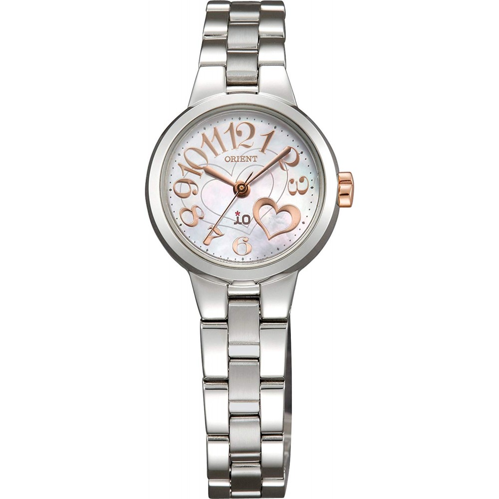 ORIENT IO WI0041WD - ladies watch manufactured by Orient. It has Japanese solar quartz movement and KK500 calibre. Stainless steel case of round shape. Case dimensions are 32 mm. in diameter and 7.31 mm. in thickness. The dial of this Orient watch is pink. Display type: analog. This timepiece has mineral glass. Stainless steel band, band color: silver. 30 m. water resistance. The watch is from IO collection.