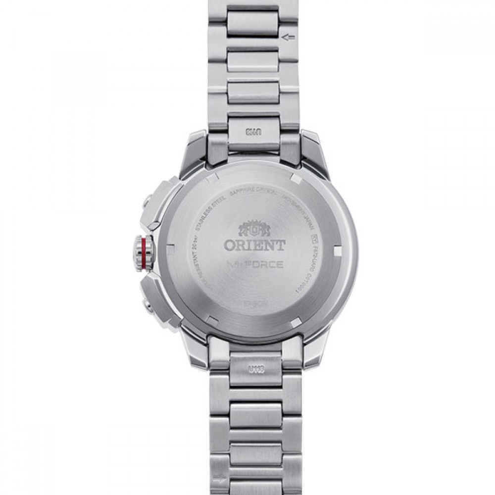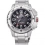 Orient Sports M-Force RN-AC0N01B - men's watch produced by Orient. It has Japanese automatic movement and F6727 calibre. Stainless steel case of round shape. Case dimensions are 45 mm. in diameter and 12.8 mm. in thickness. The dial of this Orient watch is black. Display type: analog. This timepiece has sapphire, antireflection coating glass. Stainless steel band, band color: silver. 200 m. water resistance. The watch is from Orient Sports collection. The following features are equipped: glowing hands, glowing markers, antimagnetic, screw-down crown, date.