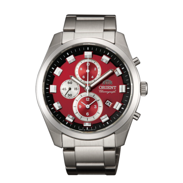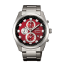 Orient Sports WV0481TT - men's watch made by Orient. It has Japanese quartz movement and KFB00 calibre. Stainless steel case of round shape. Case dimensions are 43 mm. in diameter and 11.8 mm. in thickness. The dial of this Orient watch is red. Display type: analog. This timepiece has mineral glass. Stainless steel band, band color: silver. 100 m. water resistance. The watch is from Orient Sports collection. The following features are equipped: date, glowing hands, glowing markers, chronograph, antimagnetic.